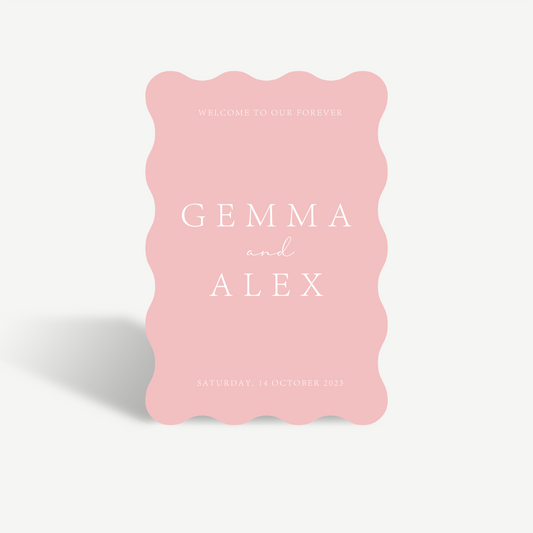 Our Madi design is the perfect balance of traditional meets modern with a classic serif font that carries so well with the beautiful flowing hand script.