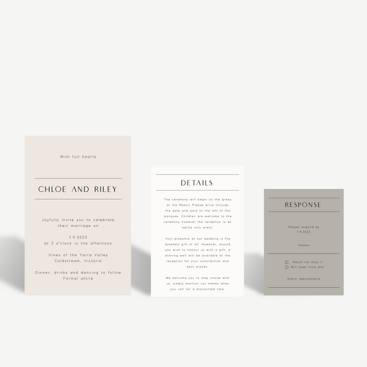 Zara is a collection focused on simple but bold typography and beautiful alignment for a classic event.