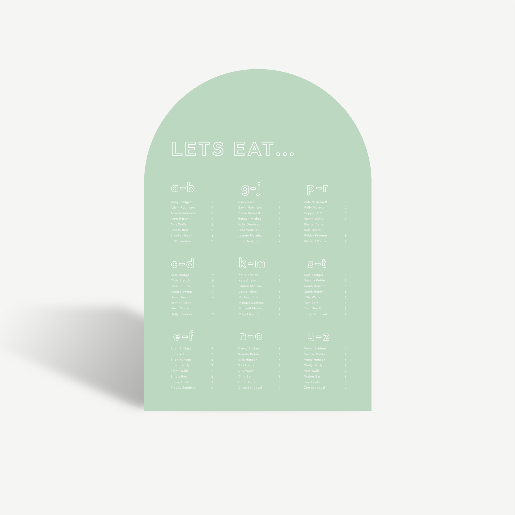Seating Charts are a must have for all sit down weddings. We cannot help you with who sits where, but we can make sure it looks pretty!